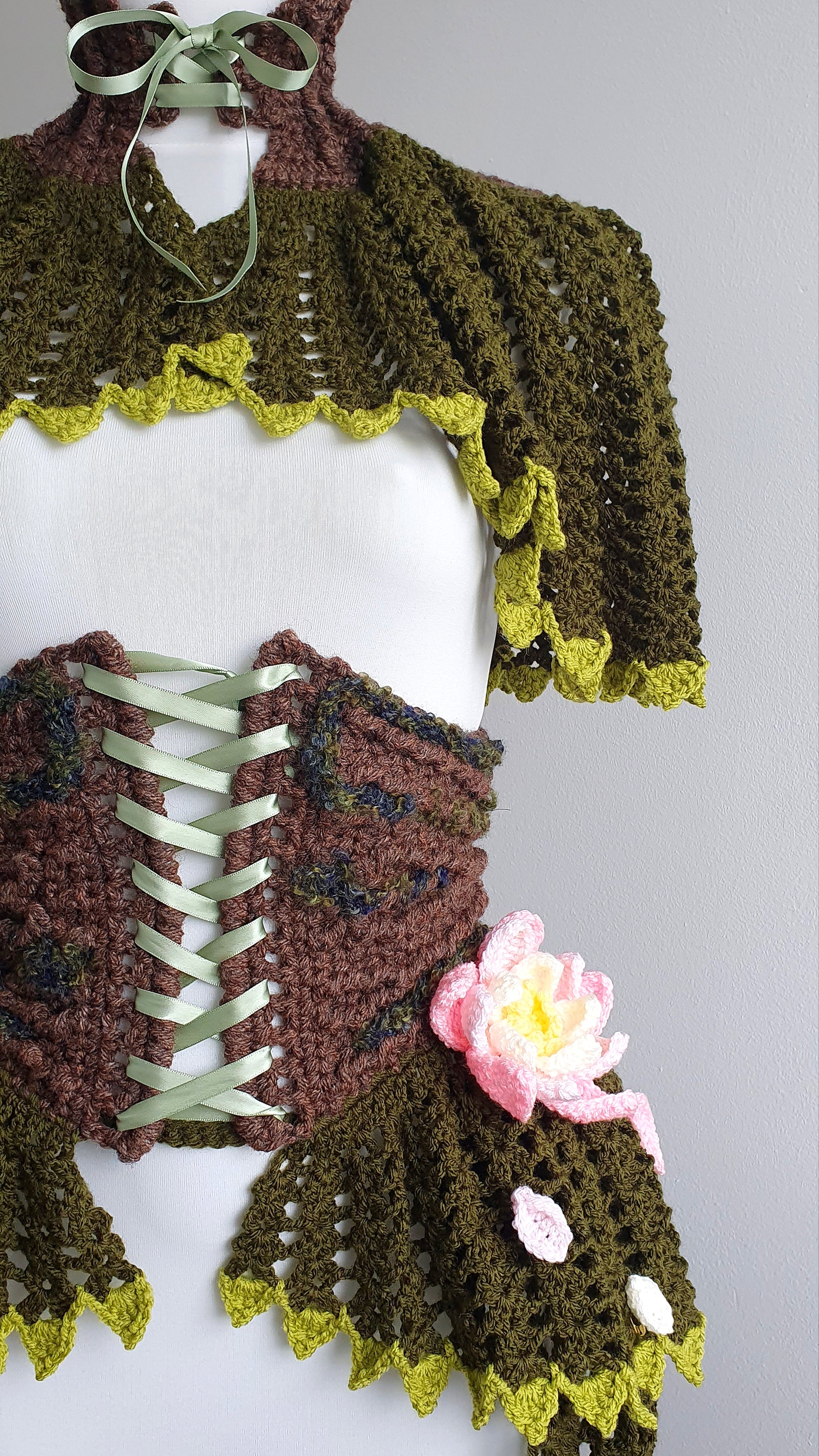 It's always '68 in my mind. Long-sleeve, crop top and skirt co-ord: All featuring my leaf burst motif granny square variant and flaring leaf-lace hems- full of updated 60's flounce. Like a true nature's child/ We were born, born to be wild/ We can climb so high/ I never wanna die.