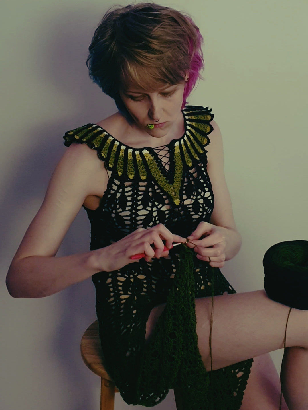 Honouring crochet's heritage while testing the possibilities presented by a few basic stitches, I focus on using our most beloved fibre medium to design structural, quirky oddities which capture the imagination and transgress the boundaries of time and tradition. I hope you enjoy transgressing them with me.
