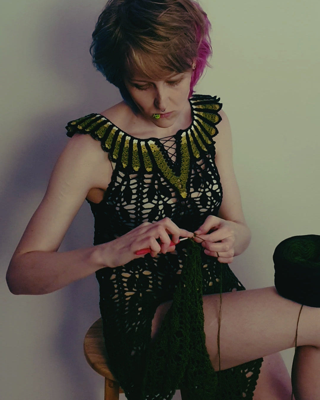 Because I usually design gauge-less, I instead make my patterns work to be as unique as you. Working in as many made-to-measure components into my wearables as possible is the simplest way make them truly inclusive. I generally try to focus on designs which work on all body shapes & sizes, no matter how much they are sized down or up.