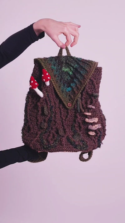 Create a whimsical and fantastical goblincore Bark Backpack for yourself with this highly detailed 17 page pattern packed with photos, instructions and charts! *This pattern cannot be completed without the use of the charts. Key and instructions for how to read my charts are given.*