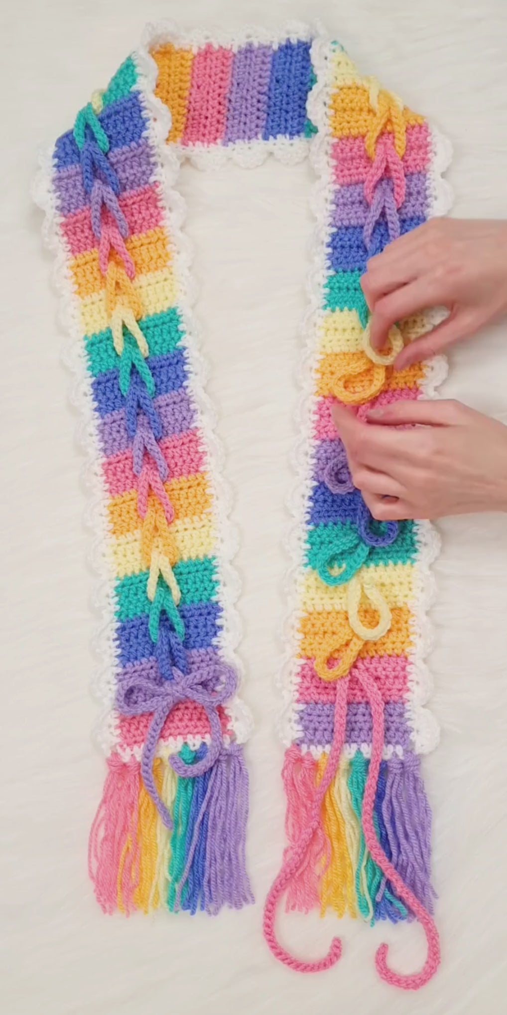 This pattern can be used to make any length of scarf.